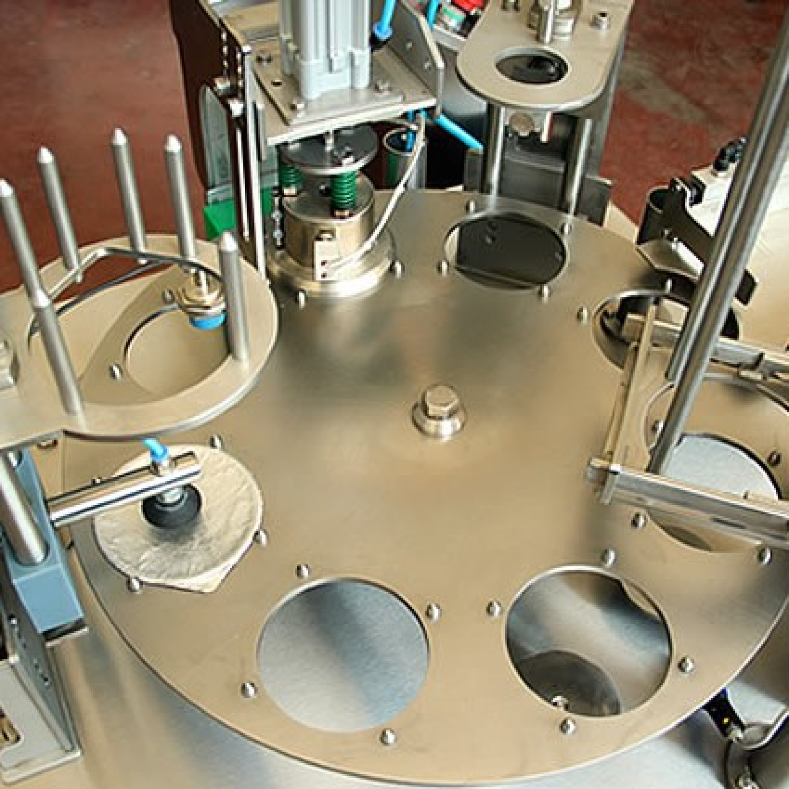 Makinamız PLC Programlı, Dokunmatik Ekranlı ve İki Zamanlı Hız Ayarlıdır. Makina sırası ile; Kaseyi hazneye düşürür, dolum yapar, kapağı koyar, ısıtma marifeti ile kapağı yapıştırır. İmalat tarihini kasenin üst kapağına atar ve işlemi bitmiş mamülü paketleme istasyonuna verir, işlemi böylece tamamlar, ayrıca çalışma esnasında makine kase düşürmezse dolum yapmaz, kapak koyma istasyonun da değişik nedenlerle oluşa bilecek folyo koyulmamış kaseyi plc sistemiyle algılayarak sıralı işlem devam ederken o kaseye işlem yaptırmaz (folyosuz kase yapıştırma yapmaz) kaseyi tekrar kapak koyma istasyonuna getirir ve işlemin yapılmasını ister kapak, kase, ürün zaiyatını önler.istasyonları takip eder makinamız da CIP sistemi mevcuttur.